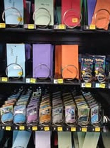 Our vending machines offer MYSTERY ENVELOPES that can contain any card from 1999 to 2026. The envelopes come with 5 cards. We do not put trainer or energy cards in the envelopes. We also sell individual cards and sometimes sealed products in the machines.